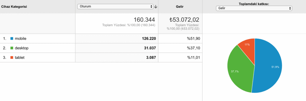 Eğer mobil segmentiniz yeteri kadar satış ya da trafik getirmiyorsa bunun nedeni kullanıcıların web sitenizi mobilde rahat kullanamamaları olabilir. Trafik, davranış ve dönüşümler (satışlar) arasındaki farkları analiz ettiğinizden emin olun.