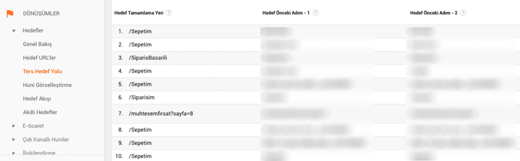 Analytics’te “Dönüşüm” sekmesi altındaki “Ters Hedef Yolu” raporundan ana sayfanızdan hangi sayfalara iç linkleme yapmanız gerektiğini görebilirsiniz.